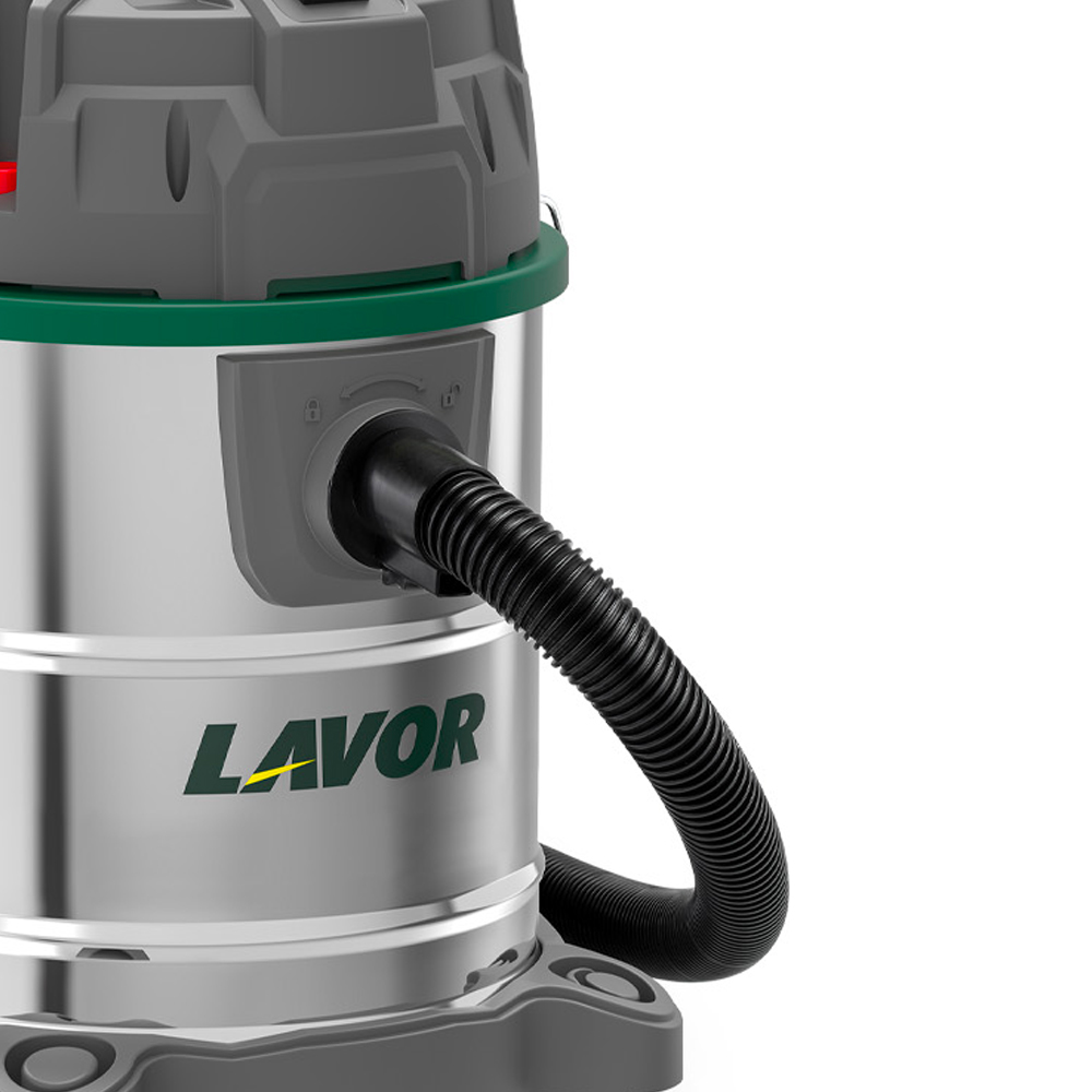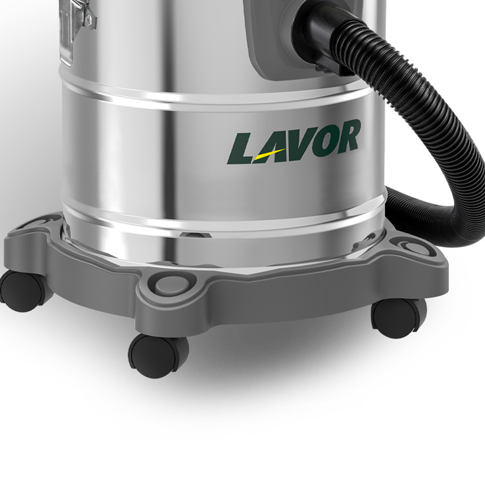 Wet and dry vacuum cleaner ideal for any type of household cleaning task. The practical upper handle and the swivel wheels placed on the accessory-holder wheeled base make it easier to move the vacuum cleaner wherever it is needed. Complete set of accessories for vacuuming any type of dry residue or for vacuuming liquids. Thanks to the practical accessory holder located at the base of the tank, it is possible to store the pipes and the nozzle at the end of the working phase