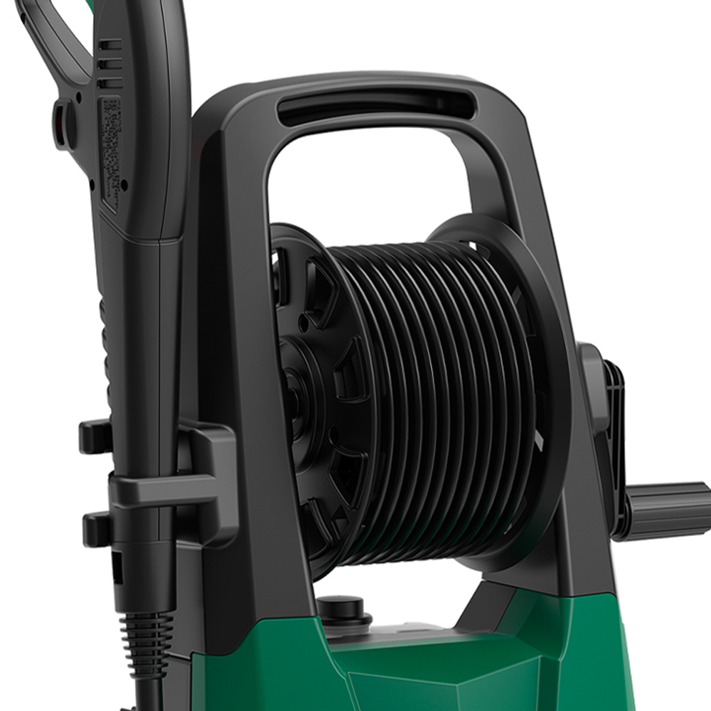 Dotata di pratico carrello e avvolgitubo per agevolare gli spostamenti e garantire stabilità durante l'uso. Grazie al ricco e completo set di accessori è ideale per qualsiasi operazione di pulizia esterna.